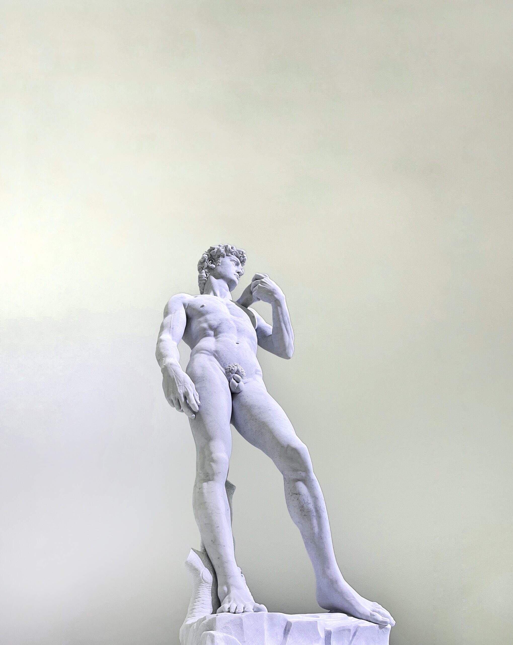 Así vemos un desnudo explícito, sin hojas de parra ni pixelados. David exhibe su “pene pequeño” pues la proporción del cuerpo así lo necesitaba. Además ese tamaño era el ideal de armonía y simbolizaba la virtud, la superioridad espiritual, la belleza del héroe.